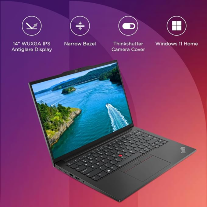ThinkPad Reliability tested on 12 MIL-STD-810H Methods and 22 Procedures | Body Material: Aluminium (Top) | Built to withstand rugged usage and can handle accidental knocks, drops, and even spills Processor: 13th Gen Intel Core i5-1335U G5 processor | 10 Cores | 12 Threads | Speed Upto 4.6 Ghz | 12 Mb Cache | Memory: 16GB DDR4 3200 MHz, dual-channel capable upgradable upto 40GB | Storage: 512GB SSD M.2 upgradable up to 1TB Operating System: Preloaded Windows 11 Home SL with Lifetime Validity | Pre-installed software: Microsoft Office Home & Student 2021 Display: 14-inch (35.56 cm) screen with (1920X1200) WUXGA IPS 300 Nits Antiglare Display |Graphics: Intel Iris Xe Graphics comes with DirectX 12.1 enables amazing graphics | HD Audio, Synaptic CX11880 codec, Stereo speakers, 2W x2, Dolby Atmos Ports: USB 2.0 | USB 3.2 Gen 1 (Always On) | USB-C 3.2 Gen 2 (support data transfer, Power Delivery 3.0 and DisplayPort 1.4) | Thunderbolt 4/USB4 40Gbps (support data transfer, Power Delivery 3.0, and DisplayPort1.4) | HDMI 2.1 | Ethernet (RJ-45) | Headphone/microphone combo jack (3.5mm)